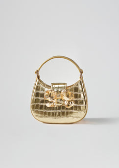 Gold Croc Crescent Bow Micro Bag